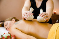Kostbare Öle sorgfältig aufgetragen, erlesene Kräuter in Stempeln unter Dampf oder Öl erhitzt, gleiten zur Entschlackung, Entspannung oder als Muskelstimulans über den Körper und regenerieren die Haut.